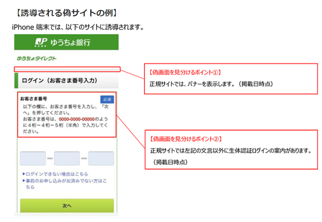 ゆうちょ銀行の偽サイト