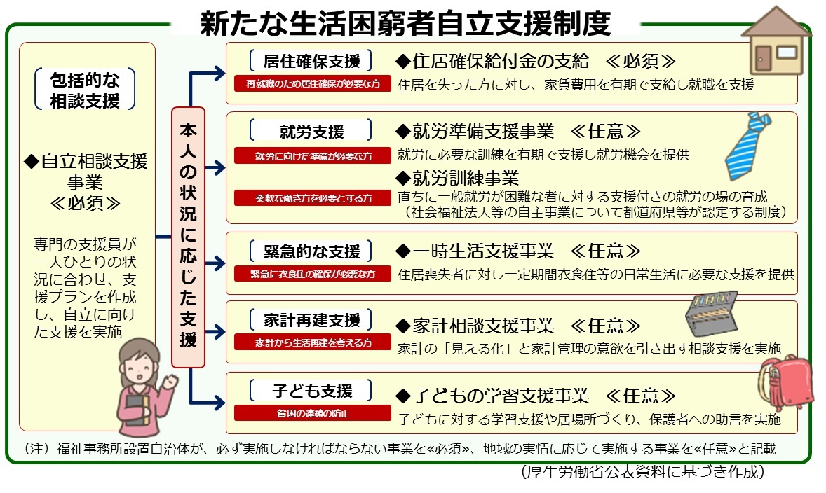 ・厚生労働省「相談支援や生活保護などの生活支援のご案内 生活のためのお金、住まいなどにお困りの方へ まずはご相談ください!」